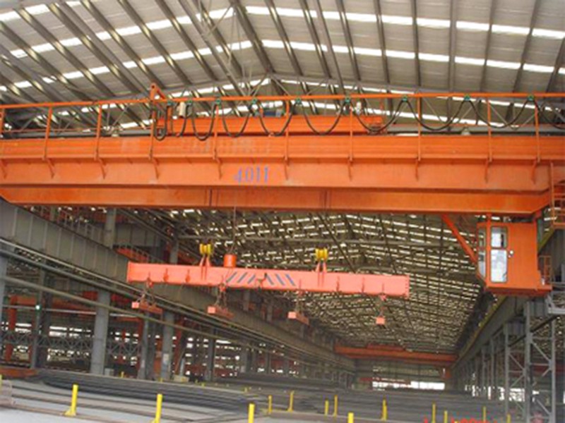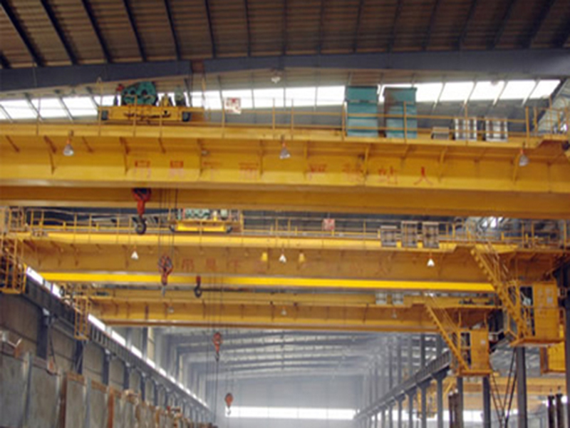 桥式起重机是横架于车间、仓库和料场上空进行物料吊运的起重设备。由于它的两端坐落在高大的水泥柱或者金属支架上,形状似桥。桥式起重机的桥架沿铺设在两侧高架上的轨道纵向运行,可以充分利用桥架下面的空间吊